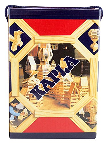 Die KAPLA- Box enthält 200 dieser Pinienholz- Plättchen und ein Anleitungsheft mit40 Abbildungen.